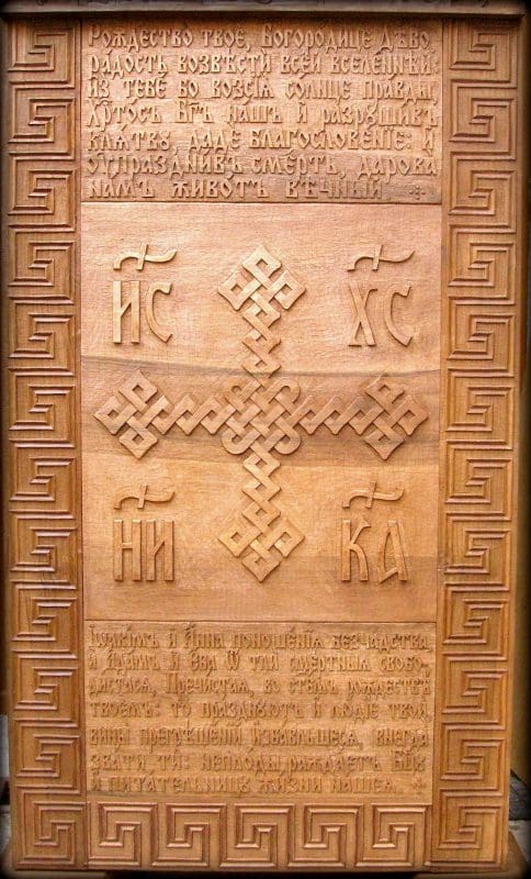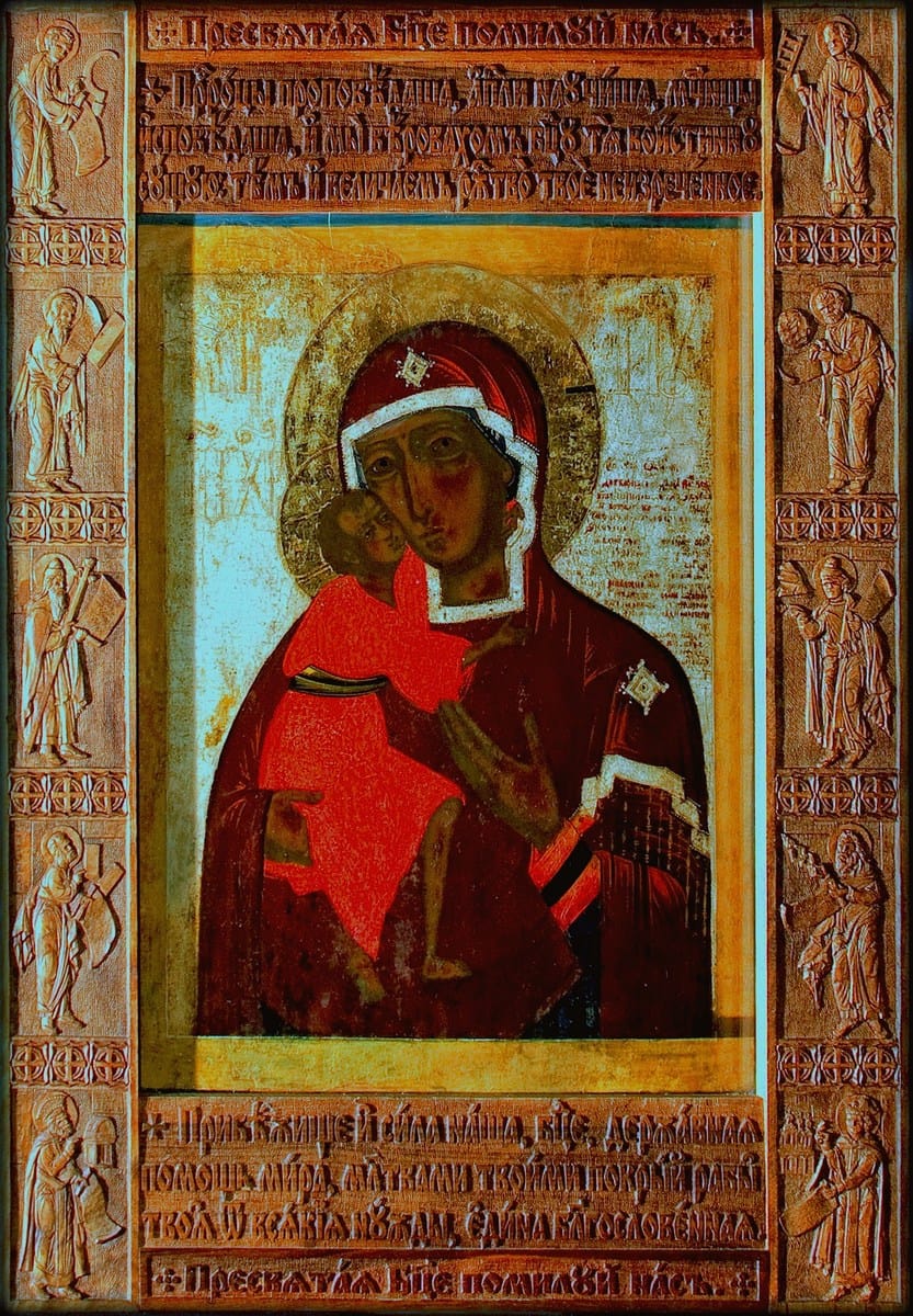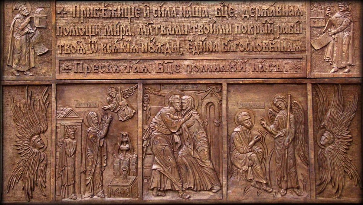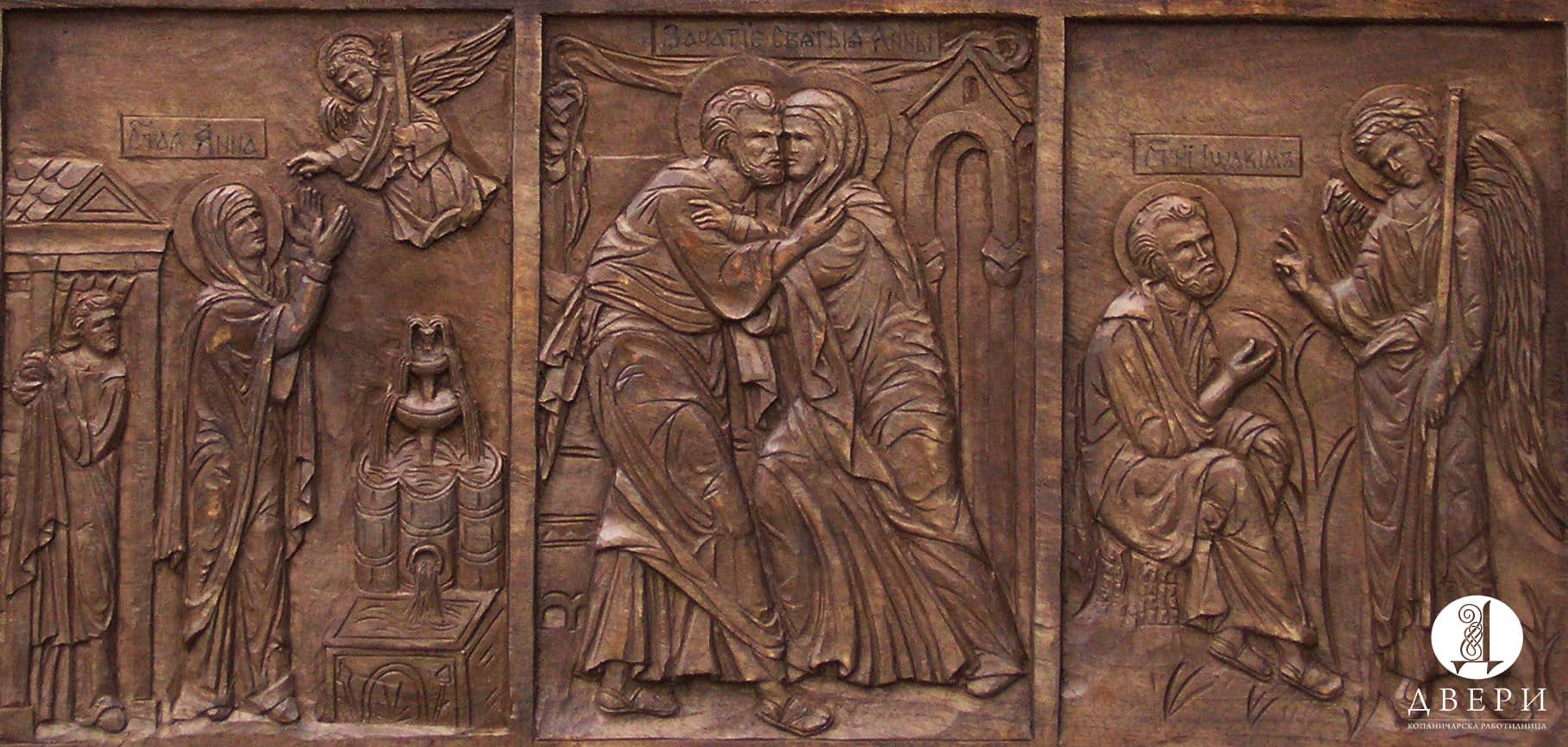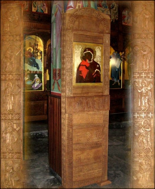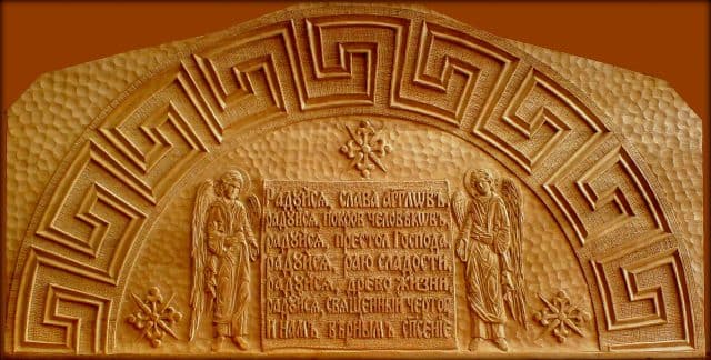 Византиски стил на резба. Иконата се наоѓа во манастир посветен на Раѓањето на Пресвета Богородица во с. Калишта, струшко. На целивалната се изрезбарени сцени од преданието за Раѓањето на Богородица: молитвите на Св.Јоаким и Ана и одредени литургиски текстови, испреплетени во византиска орнаментика. Околу иконата се прикажани избрани пророци  – „Пофалба на Пресвета Богородица“.