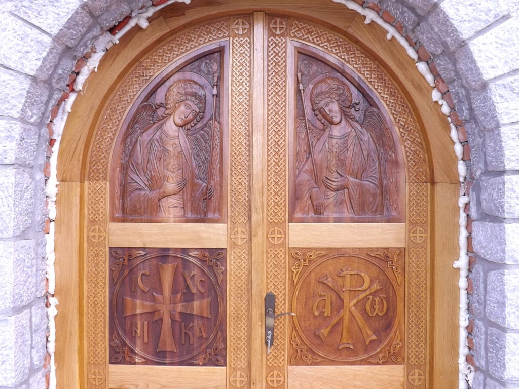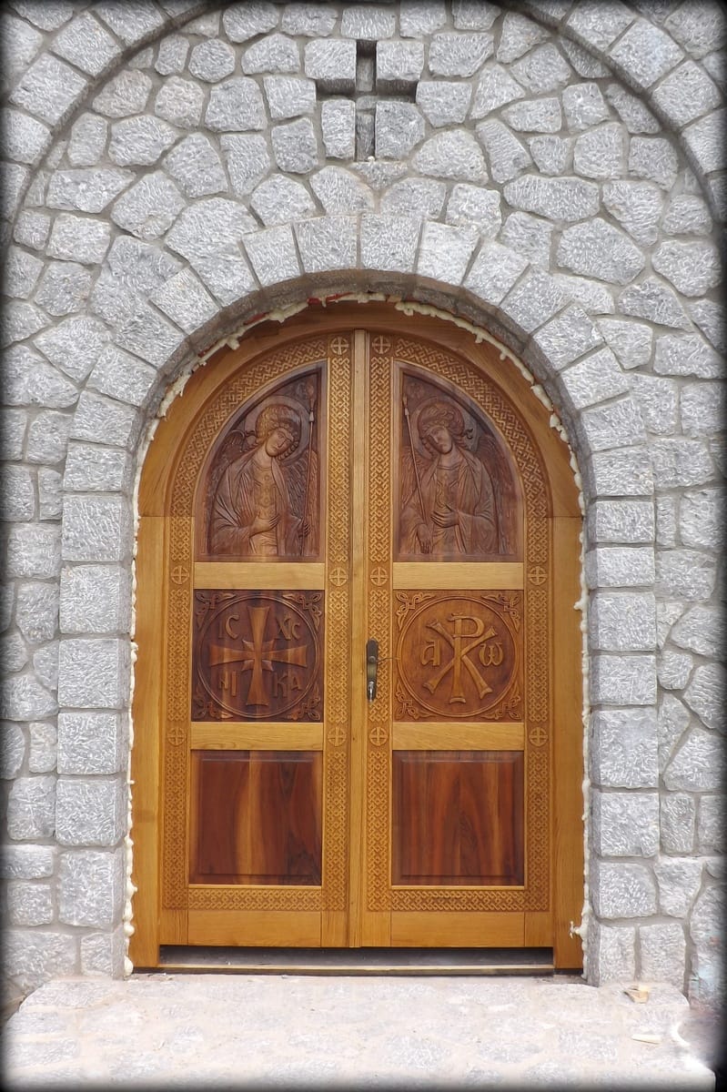 Влезна врата во црковниот храм „Собор на Св. Архангел Михаил, с. Враништа, струшко Врата за црковниот храм посветен на Соборот на Св. Архангел Михаил
