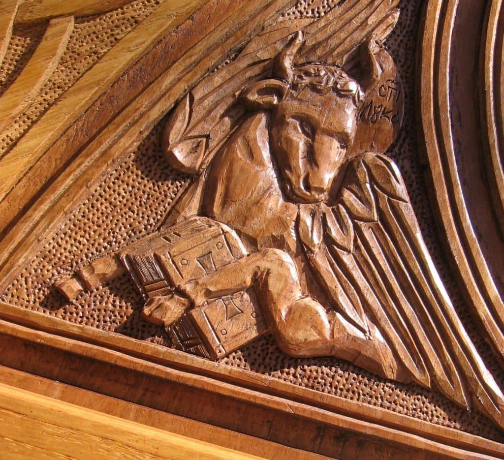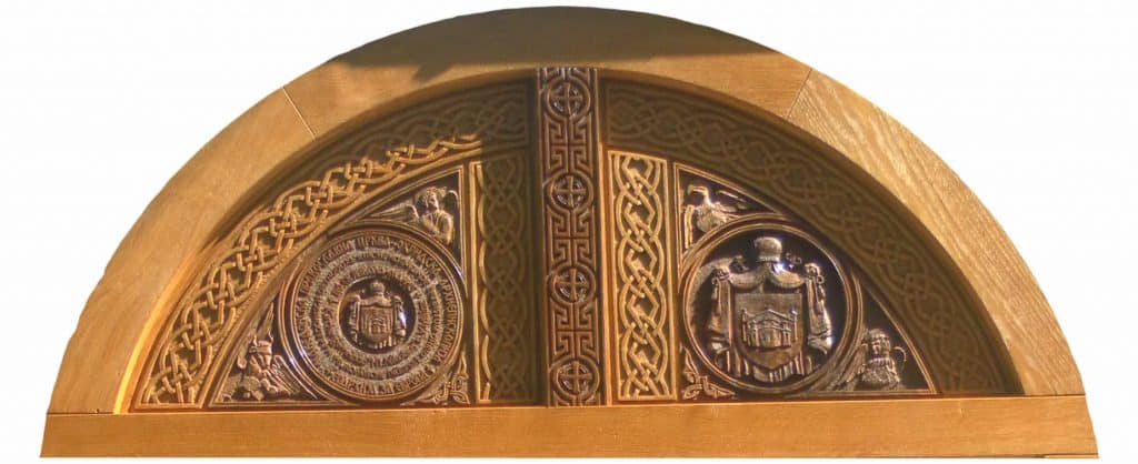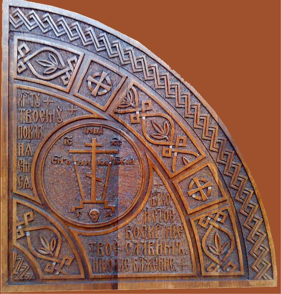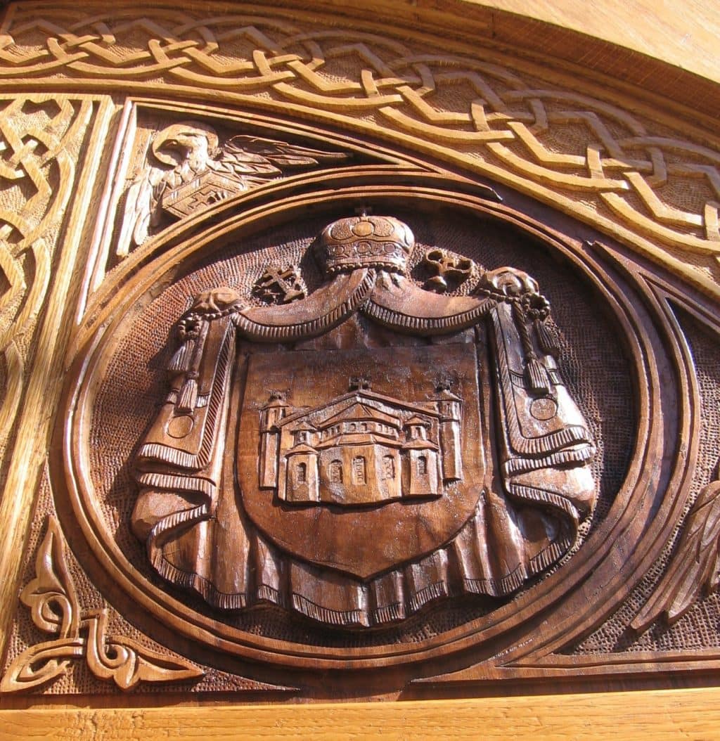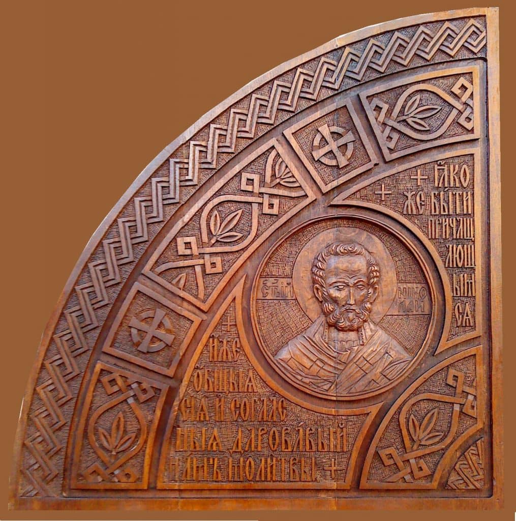 Западната и јужната порта во храмот посветен на Свети Никола Архиепископ Мирликиски, чудотворец во Мајнц, Р. Германија. Направени се во комбинација од орево и дабово дрво.